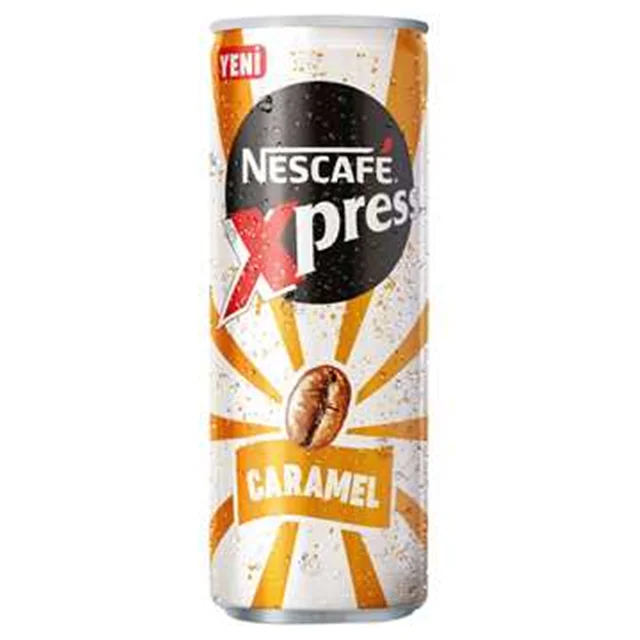 آیس کافی نسکافه اکسپرس کارامل xpress حجم 250 میل نوشیدنی بر پایه قهوه دارای کافئین و در بسته بندی قوطی می باشد که حاوی 250 میلی لیتر نوشیدنی است که دارای انرژی زایی بالا و رفع کننده خستگی بوده و نیازی به فراوری ندارد، این محصول برند نسکافه در فصل های مختلف بویژه در بهار و تابستان می تواند یک انتخاب عالی جهت تجدید انرژی و تامین کافئین باشد.