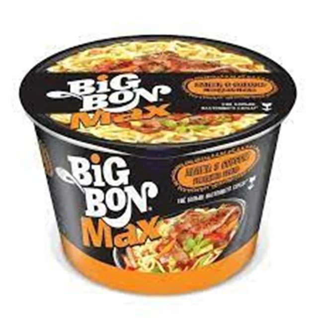 Big Bon یک راه حل خوشمزه و سریع برای کسانی است که وقت ایستادن در کنار اجاق گاز را ندارند! از مرغوب ترین آرد تهیه می شود، سپس خشک می شود، فشرده می شود و در یک کاسه بلند مناسب قرار می گیرد که بعداً به عنوان بشقاب عمل می کند. تندی غذا توسط سس غلیظی تامین می شود که ماده اصلی آن گوشت گاو خشک شده با استفاده از فناوری خاصی است. پس از مخلوط شدن و ریختن همه اجزاء با آب جوش، عطر شفافی دارند؛ تحت تأثیر دمای بالا، شاهکاری از طعم های غنی را بدست میآورید.