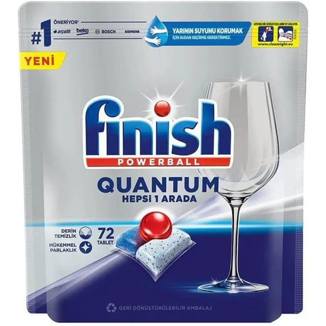 قرص ماشین ظرفشویی فینیش کوانتوم تولید برند فینیش در تکیه است. برند فینیش در سال 1953 در ایالات متحده به ثبت رسید و سپس توسط یک شرکت بریتانیایی خریداری شد. این برند با سابقه ای طولانی توانسته است جایگاه برترین برند در تولید مواد شوینده مخصوص ماشین های ظرفشویی را به خود اختصاص دهد.